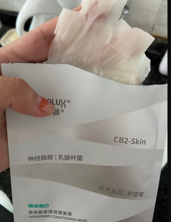 镇静皮肤很明显的效果,适合晒后或者泛红,对受损屏障的修复能力杆杆的。面膜纸是纱布的质地,会牢牢锁住精华液,不会往下掉,也不会假滑。