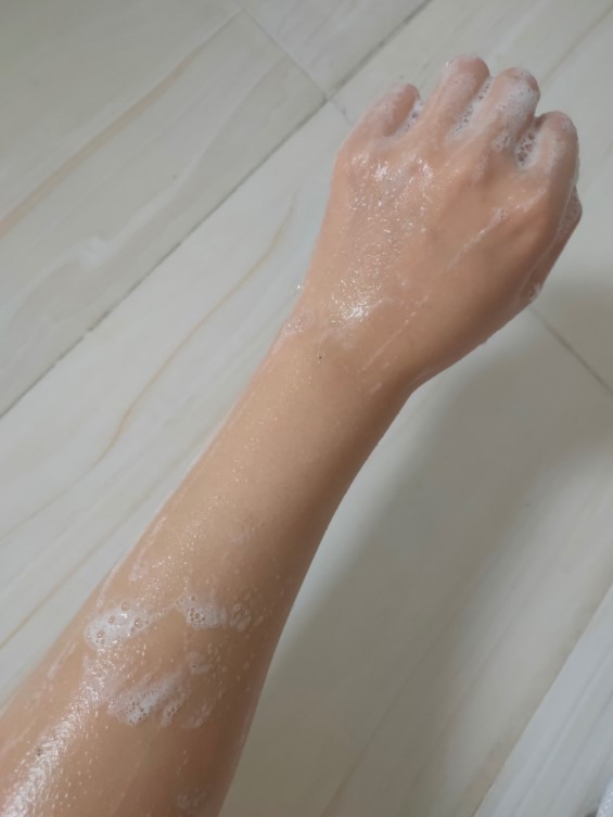 第一次买磨砂膏,这个能搓十分钟左右,留香持久很不错,容易推开香味也很好闻。用完之后感觉滑滑的,洁净不紧绷效果还不错,有精油成份。我腿上的鸡皮看着就减淡了不少,皮肤也白了,尤其是摸起来很光滑。