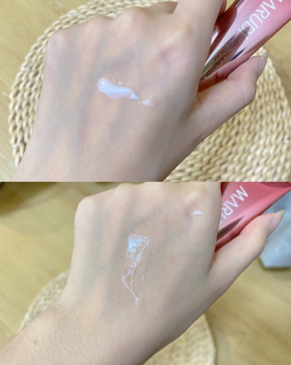 眼霜的设计还是很有风格的,眼霜的头直接就是一个按摩仪的设计,按摩仪顶端是有一个小孔的,从这里将眼霜挤出来,然后再使用就可以了。眼霜是乳白的质地,非常的水润,很好推开涂抹,吸收的效果也很快。