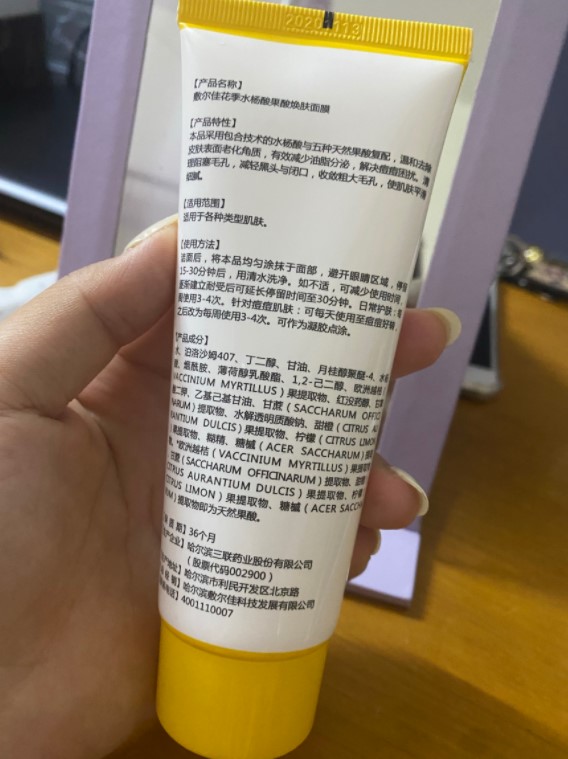 这款敷尔佳水杨酸果酸焕肤面膜是我在小红书看到的,我之前的面膜都是贴脸式的,还没有用过涂抹式的面膜,我是敏感肌,看了这款说是敏感肌比较适用,我就买了下来。