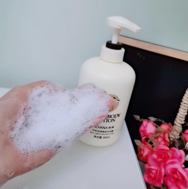 总结:这款韩婵牛奶沐浴露难怪那么的多的好评,确实挺好用的,清洁力很不错而且比较的滋润,奶香的味道不过不刺鼻,不假滑很清爽,容量很大外包装很可爱。