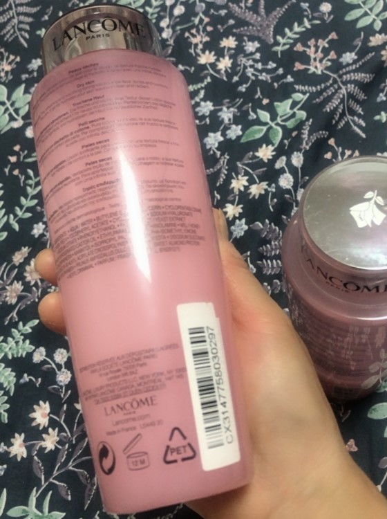 这款兰蔻粉水是我在微博的一个美妆博主的视频里面看到的,说是可以很好地保持面部的滋润,我自己的本身的肤质属于偏干燥的那种,所以很需要一款补水保湿的水。