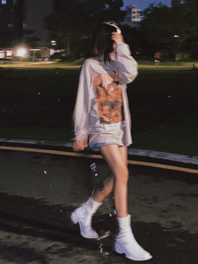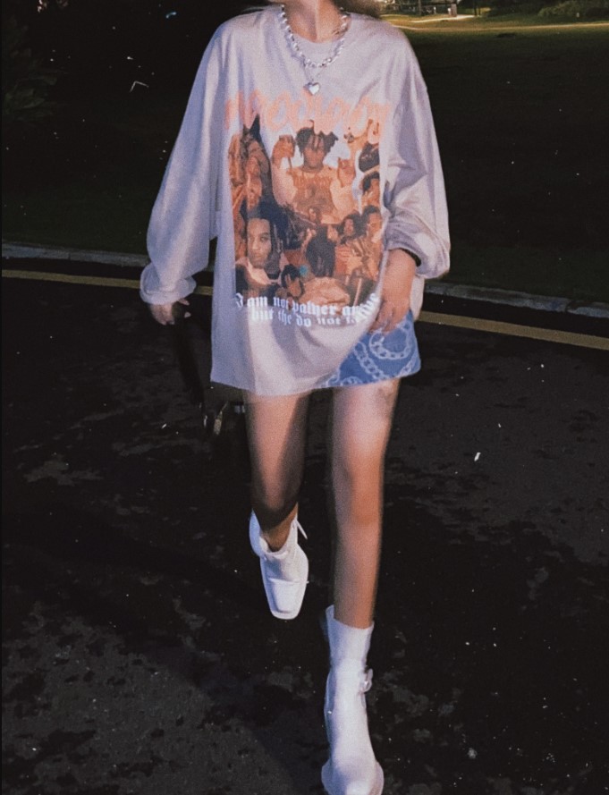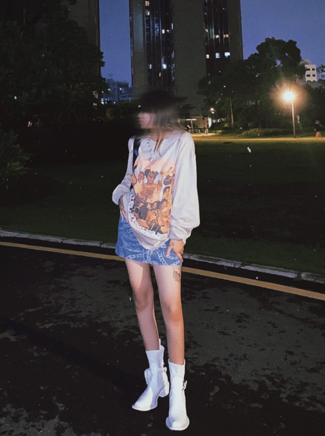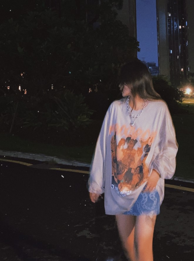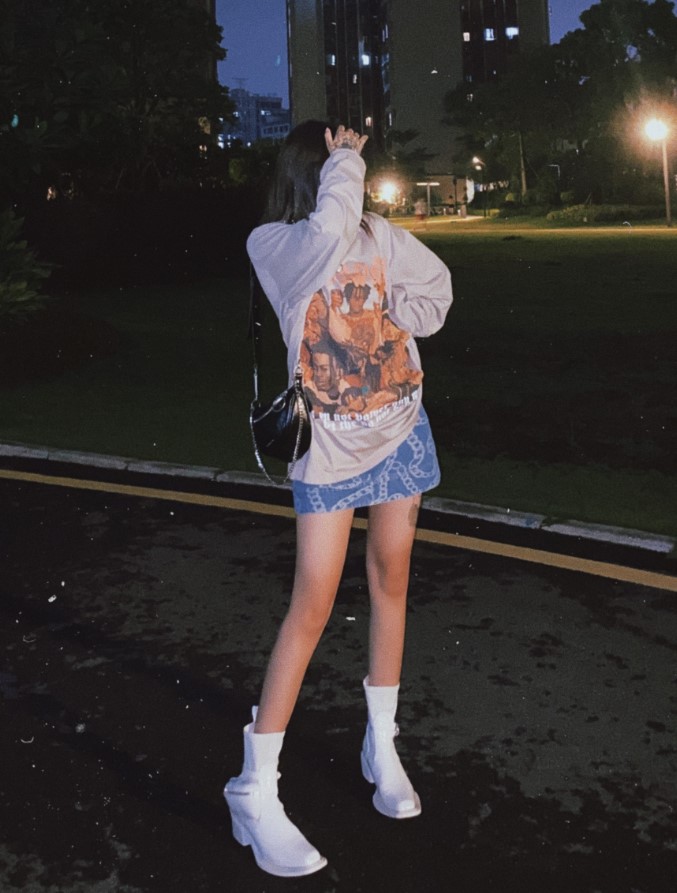 整体上身效果很不错,街头风很足,穿上你就是这条街最靓最美的妞,纯棉的材质舒适透气 宽松韩版 搭配建议下装“消失”凸显大长腿,再配上一双战靴就绝绝子了,我的身高体重:168 53。