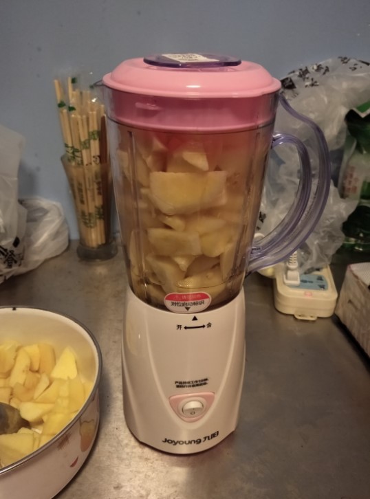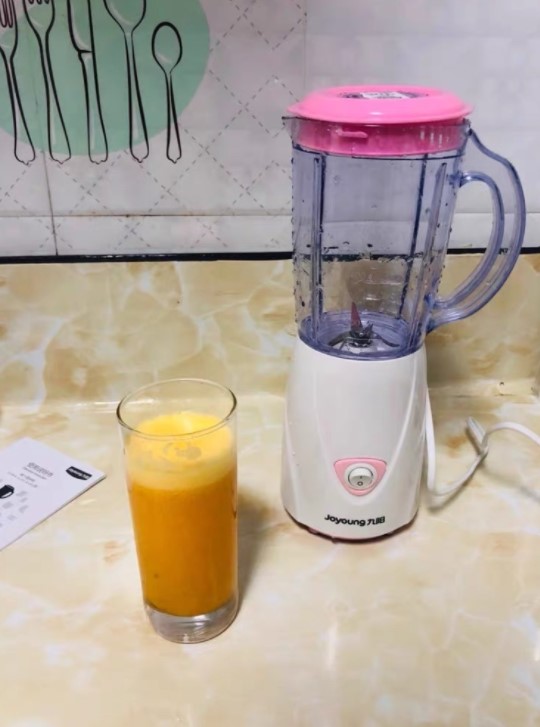 这款九阳榨汁机是我之前看到室友一直在使用的时候被安利的,我室友很喜欢喝水果汁就喜欢自己买水果榨汁喝,外面的不太安全,我也想着自己买来试试看,便宜又安全。