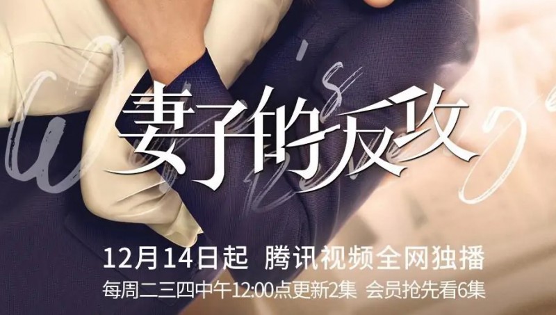 《妻子的反攻》定于2026年12月14日在腾讯视频独家播出,每周二三四中午12:00更新2集,会员抢先看6集。