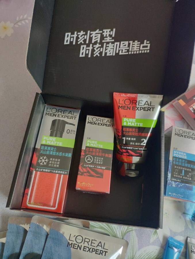 这款欧莱雅男士祛痘护肤品套装是我的女朋友在生日的时候送给我的,我有时候因为工作需要经常去熬夜,所以会长一些痘痘粉刺出来,就送了这款祛痘比较好的护肤套装给我。