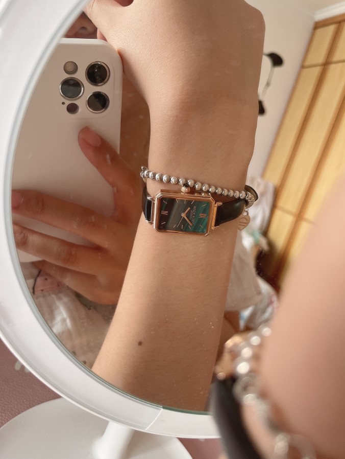 总结:这款Lola Rose小绿表整体上来说很好看,加上现在绿色这个颜色也是现在比较流行的颜色款式,戴在手上很显白,是穿搭搭配很好的一款手表,七夕节送给你的女朋友是再好不过了。