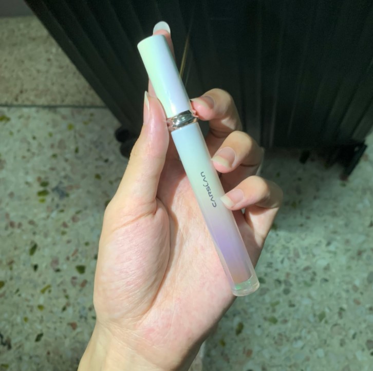 素颜涂它不会很突兀,不得不说它的外观真的很可,反光反的是彩色光,它口子拧开的地方做了个双层圈扣设计,真的很有感觉。