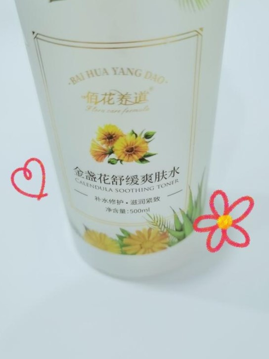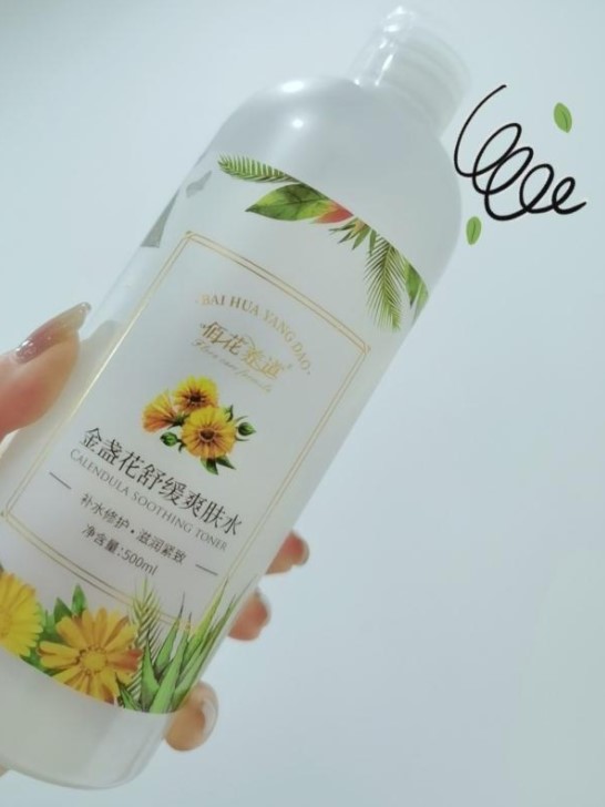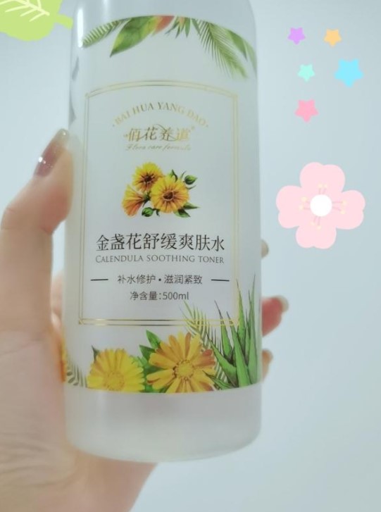这款佰花养道金盏花爽肤水是我的闺蜜给我推荐的,她是在美容院上班的,所以对一些护肤品会比较了解一些,谁是补水保湿的效果很不错,我就直接被种草了。