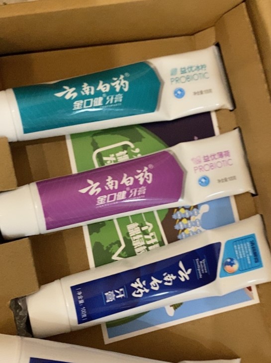 包装挺好的,用云南白药的牙膏可以保持口气清新,价格也实惠哦!,牙膏挺好的,包装与外观简洁,也很喜欢这个味道,有个小缺口。