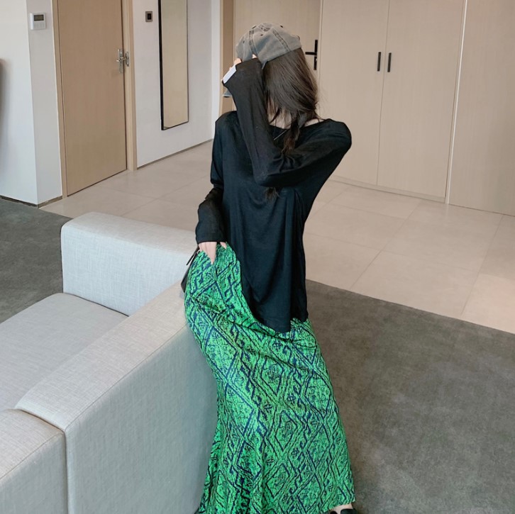 绿裙子我们可以搭配黑色无袖的t恤,这样在夏天穿起来很舒服清爽而且还带一些性感,或者白色的套衫搭配花卉绿色裙子也是可以的,白色本身就是搭配性很高的颜色,绿色长裙的花是白色的,所以这样穿比较协调。