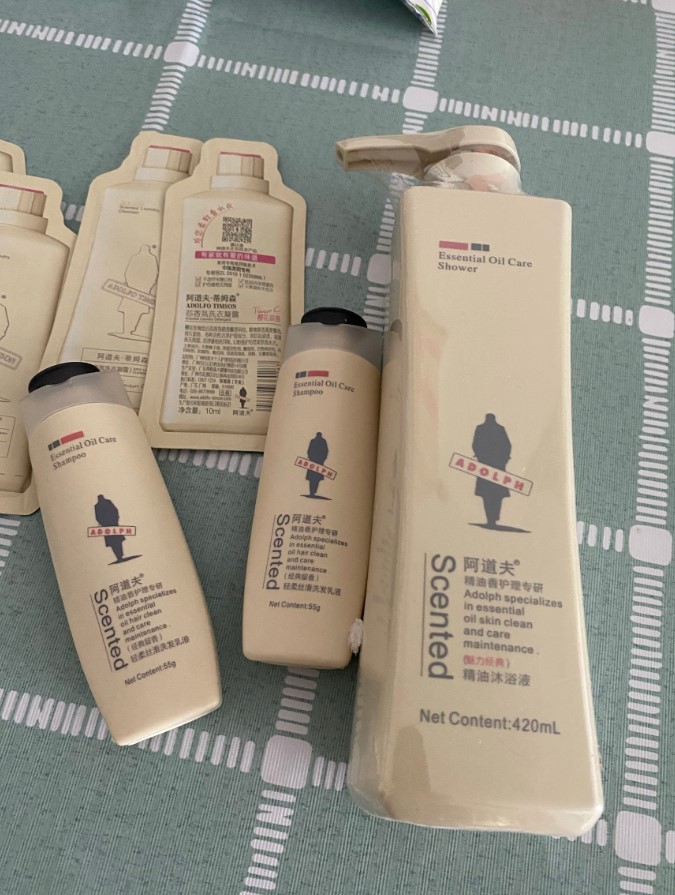 阿道夫沐浴露挺大瓶的,赠品小样送了毒品。里面是淡黄色颜色 的液体,味道偏浓但不刺鼻,挺好闻的,洗完澡整个浴室都是它的香味。