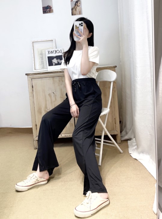 蕉下阔腿裤女夏季薄冰丝防晒裤2026年新款黑色休闲裤垂坠开叉裤子
