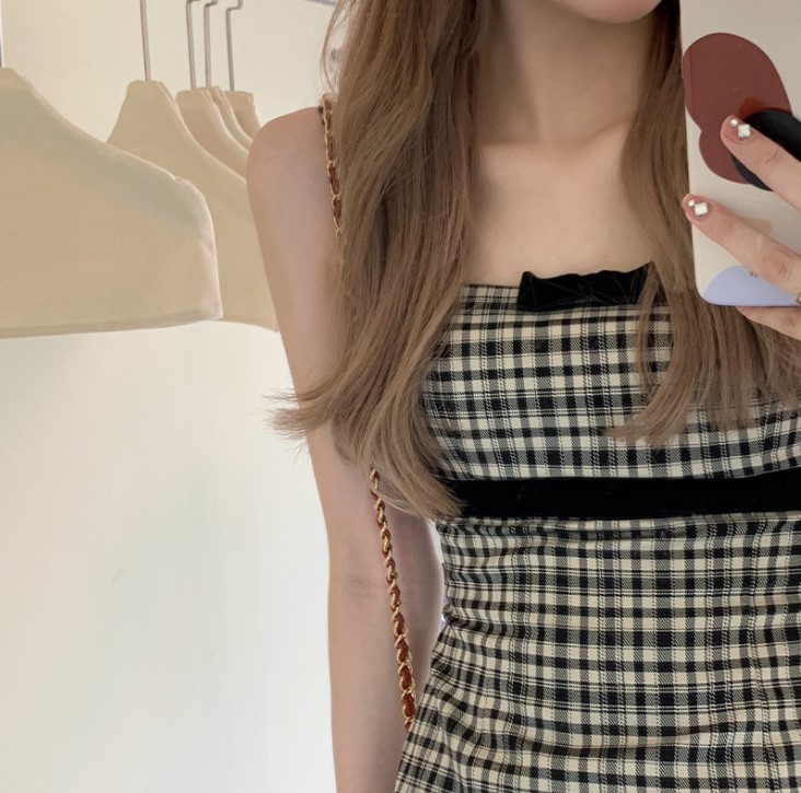 如果觉得穿吊带裙太露的话我们可以在里面穿一件t恤也是不错的选择的,这样可以防止走光,也显得比较的可爱,或者在外面穿搭一件衬衫,这样显得更加的性感。