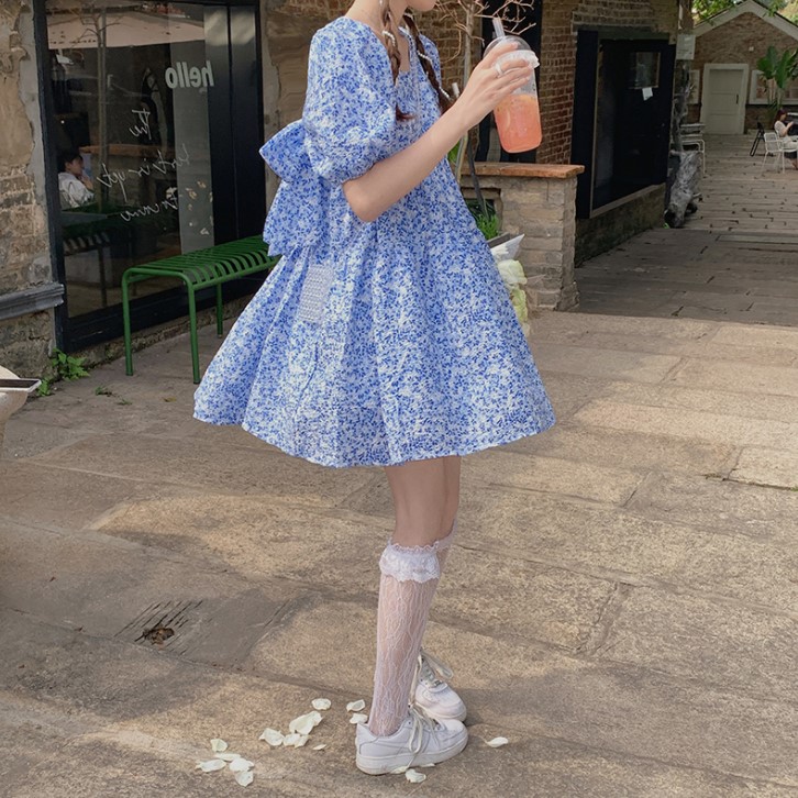 这样的系法会比较清爽,夏天里穿起来更加轻盈浪漫。很多少女风的连衣裙,一片式的设计,都会选择纤细的长带子来点缀,增强整体视觉的层次感。