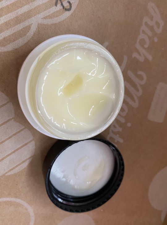 这款眼霜的包装特别的简单,是罐装的,打开之后里面的眼霜与别的眼霜质地不太一样,里面的类似于乳液质地,我在手背上涂抹了一下试了一下,很好推开,而且推开之后质地轻盈又细腻,还能闻到一股淡淡的香味,很让人着迷。