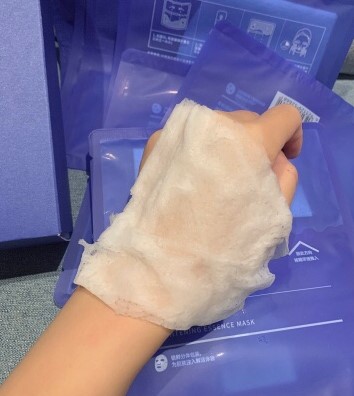 很薄很薄的面膜纸,贴合度非常赞。但是上脸我感觉有轻微刺激感,特别冰凉,敷完后脸部微红,但是用温水洗过脸之后就发现脸又恢复了正常颜色。精华液是是特别清爽的质地。