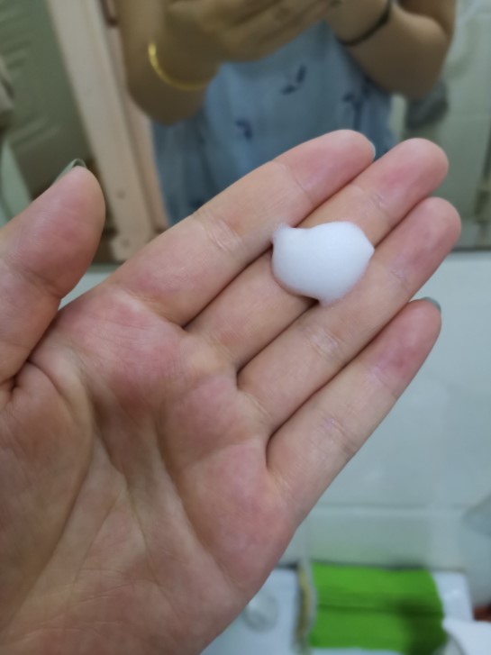 它是按压即出泡沫的设计,绵绵的泡沫看着就很温和。很多氨基酸洁面要用起泡网,而它不用,很方便。使用的时候也只要轻轻按压1-2泵,泡沫在手上很紧实绵密,不会坍塌。