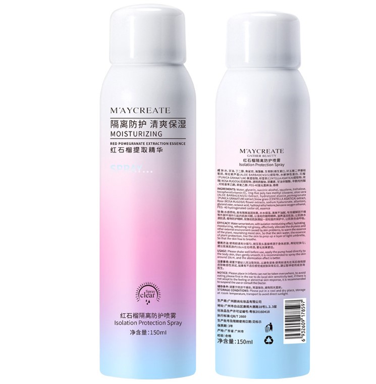 相信看完上面的介绍之后,各位小伙伴对于红石榴隔离防护喷雾的作用和使用方法会有一些了解,其实它与一些补水喷雾较为类似,但要记住它是不能够防晒的哦。