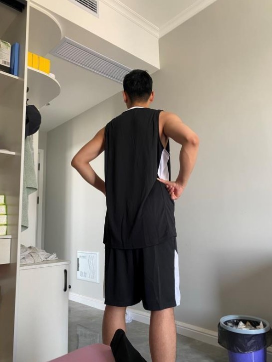 很贴心面料舒适版型非常好,打篮球穿起来宽容点能舒服些,颜色很正下班可以打打篮球,黑白配再搭配白色的一双篮球鞋。