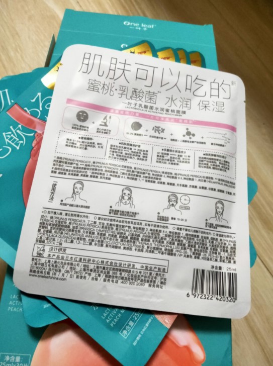 一叶子的面膜我妹妹屯了很多在家里面,我时不时就会偷使用她的一叶子面膜,最近这款一叶子乳酸菌桃子面膜我用了一下挺好用的,就觉得自己去买多一点来使用。