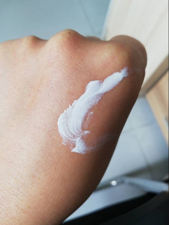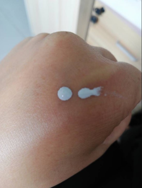 隔离霜的质地是乳液状的,没有什么特别的,在自然光下呈紫色,是一种挺好看的紫色,这个也蛮有好感的,涂到脸上感觉还是蛮滋润的。