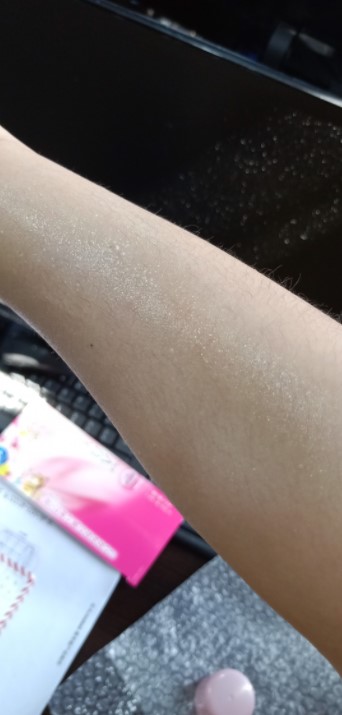 拿手背来试试这款防晒喷雾产品,能感觉到喷雾很细,雾化性很好,有清香味,产品不油腻,里面添加了copol ymer能迅速形成张力防水膜,做到防水防汗的效果,而且能阻断UVA透皮。很快就吸收了,真的不油腻。