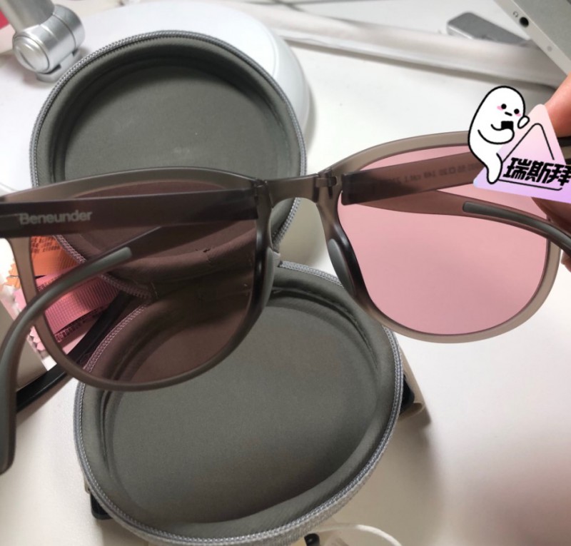 轻巧,携带方便,不压鼻梁,久戴不疼。至于防晒效果也不错,镜片的黄色就是暖色的滤镜。戴惯了黑茶色的偏光镜片,一开始还不习惯黄色的。