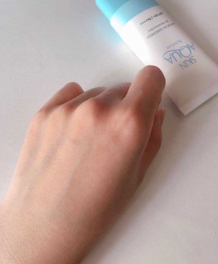 这款SPF50+PA++++的物理防晒,以及防晒指数SPF50pa++++,上脸清爽不粘腻,不假白,夏天脖子抹化妆品容易过敏,这款没有酒精,对敏感肌友好,最热的两个月完全没有问题啦。