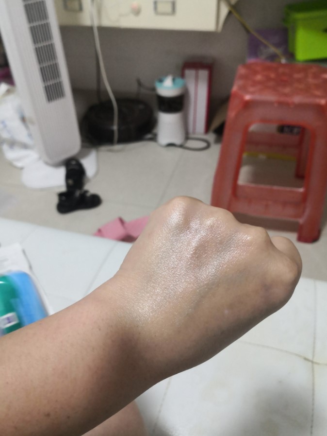 霜体浓稠适中。很容易抹开吸收快,不假白。不觉得很油,只是刚抹上去的时候有点点油,慢慢吸收后就不觉得了。防晒还可以,在外面逛了两三个小时没有变黑。