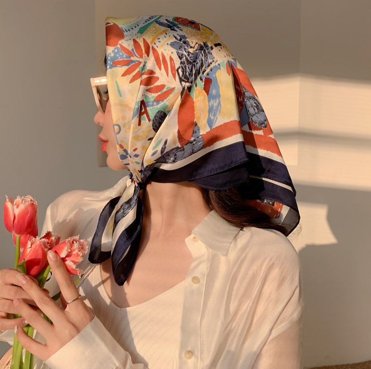 春天丝:丝绸是丝巾最常使用的材质,用这种材质制成的丝巾不仅拥有迷人的光泽,而且具有天然的褶皱,看起来自然、漂亮。丝绸的天然纤维,在干燥多风的春季可以免去静电的烦恼,并具有良好的保温性与弹性。