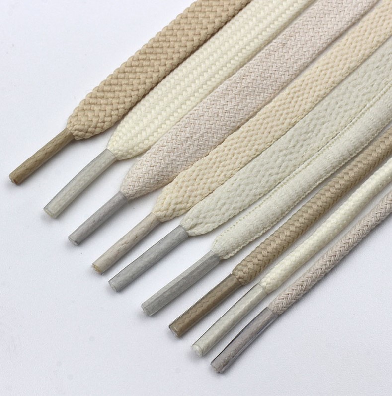 鞋带的原材料有涤纶的、腈纶、涤棉等等,目前最通用的是涤纶材料的,其价格便宜,拉脱力较强,相对耐脏。其次是涤棉的。