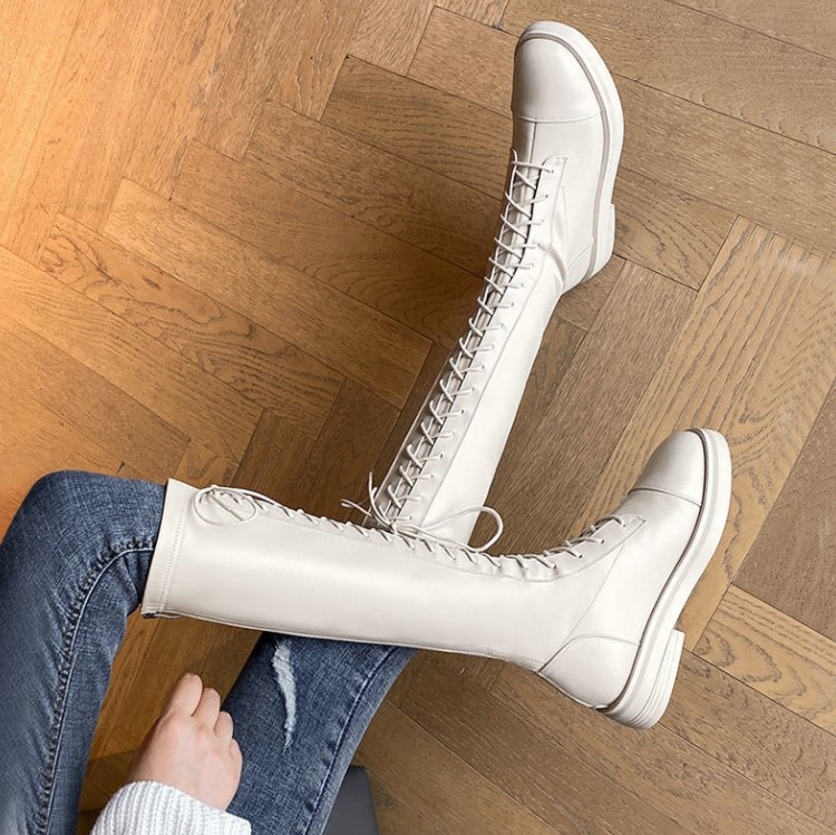 长筒靴绑带会更加好看一些,长筒靴点缀时尚的镂空设计会让鞋子变得更加的独特,绑带的设计可以让鞋子穿起来更加舒服,更加的时尚穿起来有气质,长筒靴具有很高的百搭性。