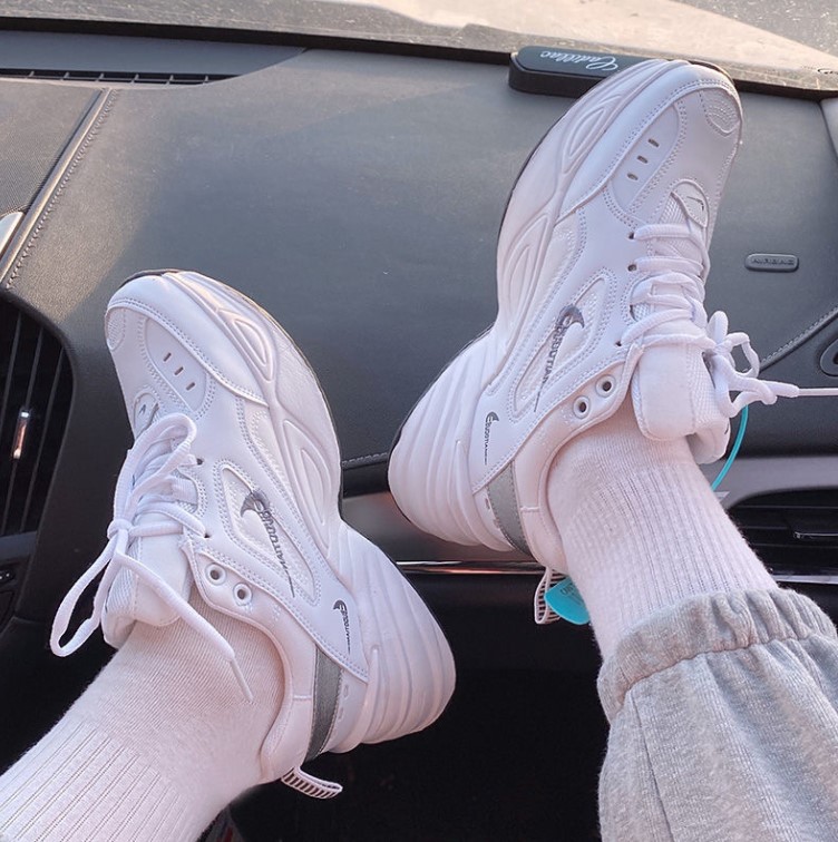 m2k是nike旗下的一款休闲鞋子,穿着起来十分之舒服而且设计也受人们的欢迎,设计的风格是近几年来人们很喜欢的老爹复古风,所以鞋型比较厚穿起来有增高的效果。
