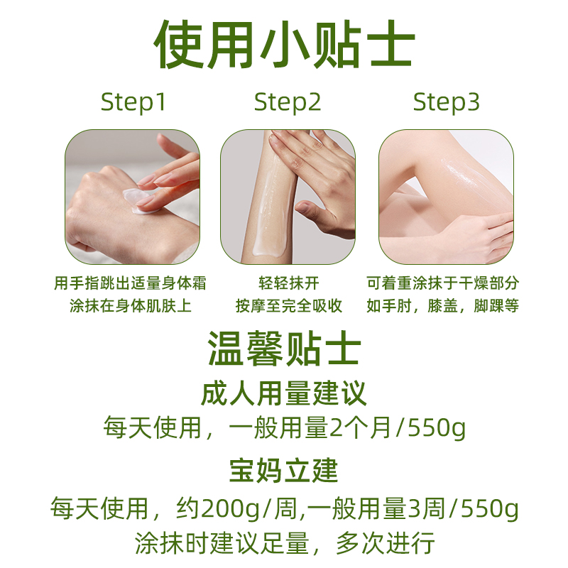 ♀拥有独特保湿润肤配方,用后倍感肌肤柔软滋润;♀迅速而持久地为肌肤补充水分;♀质地极其温和,不含任何香精香料,完全无刺激;♀安全用于各类敏感性肌肤♀适合全身涂抹