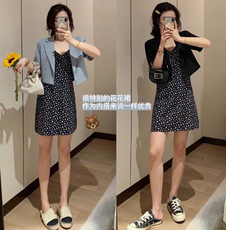 清新的丹宁碎花连衣裙极具少女气息,搭配小白鞋更显青春活泼,A字款的设计也能够很好的遮住臀部肉,露出纤笔直的双腿;另外还可以配上一副酷感十足的墨镜,直逼女王范!