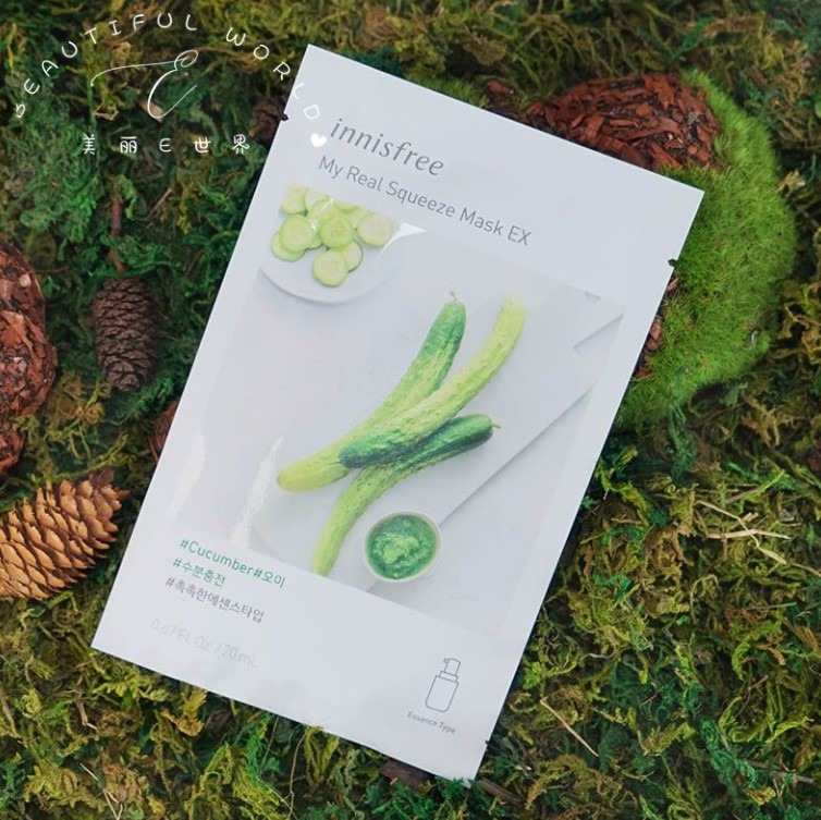 颜控的小编对产品的外貌还是有一定的关注的,这款面膜的外观比较清新,悦诗风吟向来都是比较清新简单的风格,贴近自然的感觉,白色的底色配上黑色的字体、一勺子添加的成分和对应的植物的图案,很雅致的格调。味道闻起来很也清新,淡淡的,不会很浓,每张的味道还不一样,敷着的时候闻到觉得很舒服。
