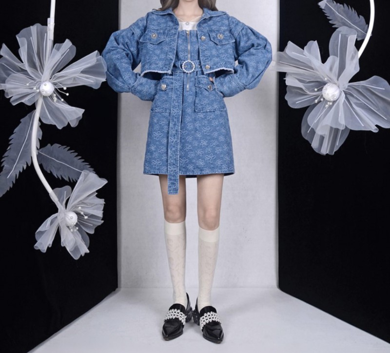 其实牛仔裙他整一个材质是比较硬的,所以大外套的话也要搭那种比较硬材质的外套,不然的话,如果他太软太休闲的话语,里面的牛仔可能不是很配。
