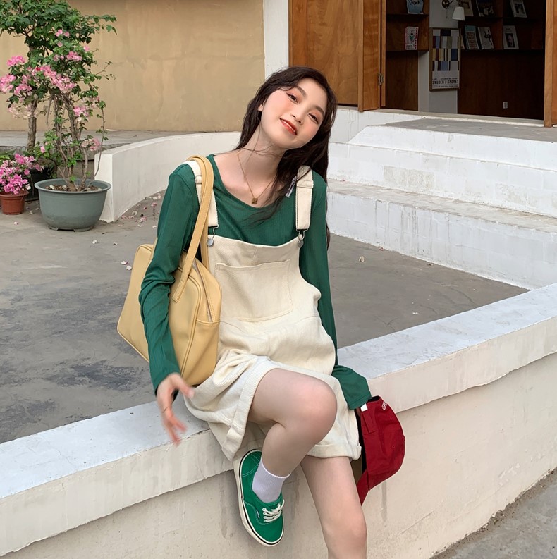 如果矮小的妹子要穿,那还要选对款式和颜色才行。选择宽松版的,这种款式有个好处,不显腿型,搭配T恤就好了。要想自己看起来高一些,松糕鞋也是不错的选择。