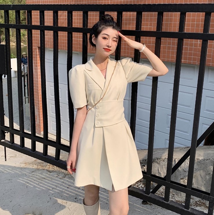 收腰款的连衣中裙自带曼妙的身线,可以凸显出女性玲珑有致的好身材,体现出女性的妩媚性感,可谓是女人味十足。在初秋季节,收腰连衣中裙外面搭配一件薄款小西装外套,不冷不热,温度刚刚正好,这样子的穿搭看起来时尚大气,又非常的优雅端庄。