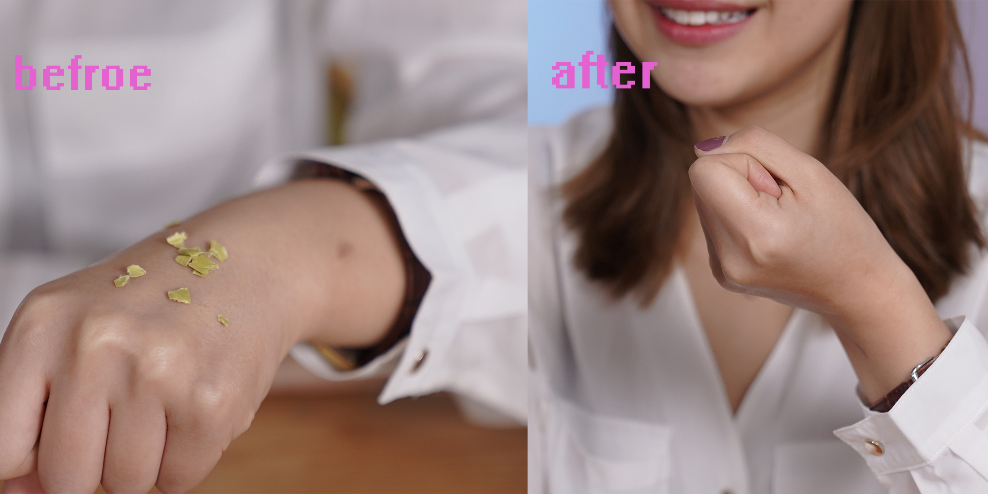 为了让你们更直观的了解它的清爽度,我在手背上抹了这款精华,按摩吸收后,把纸屑撒在手背上。通过手背翻转后,纸屑几乎全部掉落,证明这款面霜十分清爽,一点也不油腻,不黏稠。