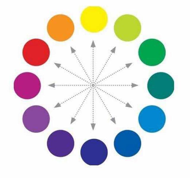 相对于单色遮瑕,多色遮瑕的颜色选择就显的复杂多了。多色遮瑕选择的唯一依据就是“补色原理”,指的是两种颜色以适当的比例混合在一起呈现比较自然的白色就是互为补色。上图中箭头所对应的就是互补色。