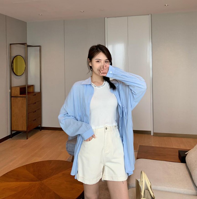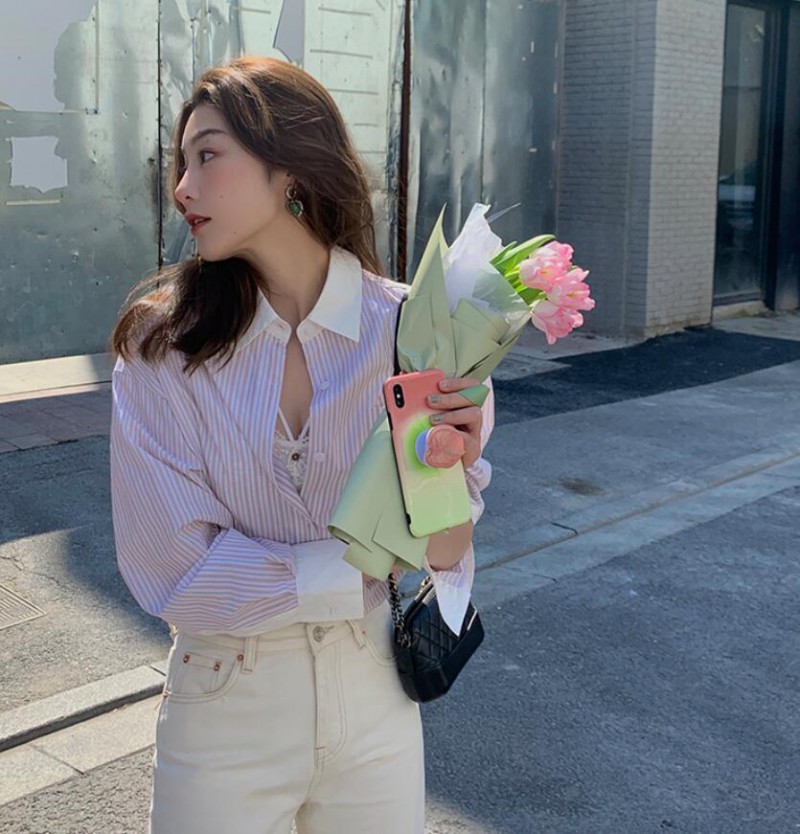 1、一件普通的宽松的上衣,直接把衣服的另一半塞进牛仔裤里面,另一半留在外面,就这样形成了不对称的穿法,这个想必许多妹子都试过这样的穿法,时尚又不单调。