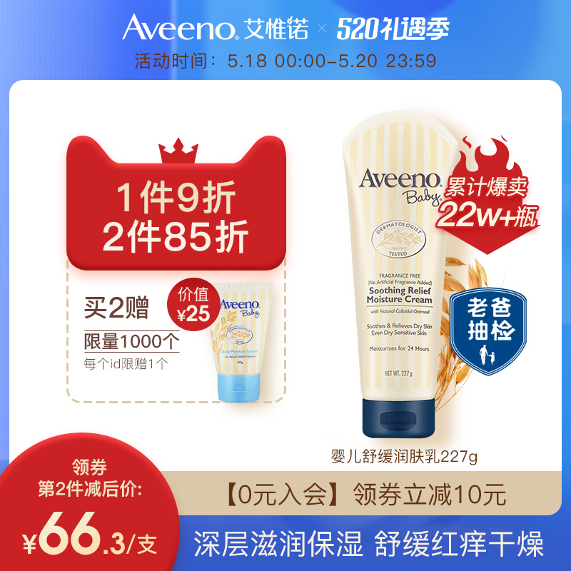 Aveeno艾惟诺婴幼儿童天然燕麦夏季宝宝面霜舒缓全身体润肤露乳