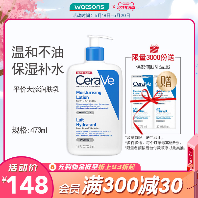 屈臣氏CeraVe适乐肤修护保湿润肤乳身体乳四季滋润敏感肌润肤露