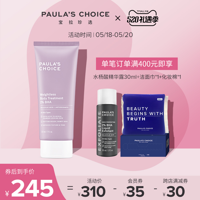 官方正品授权宝拉珍选2%水杨酸精华身体乳210ML