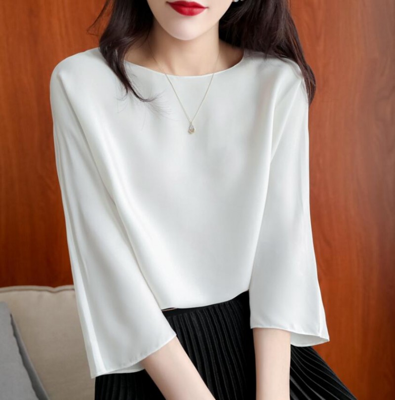 白色内衣和白色衬衣是相同的颜色,即便是透出来了,也不会有太大的影响,合适比较保守的一种穿法。