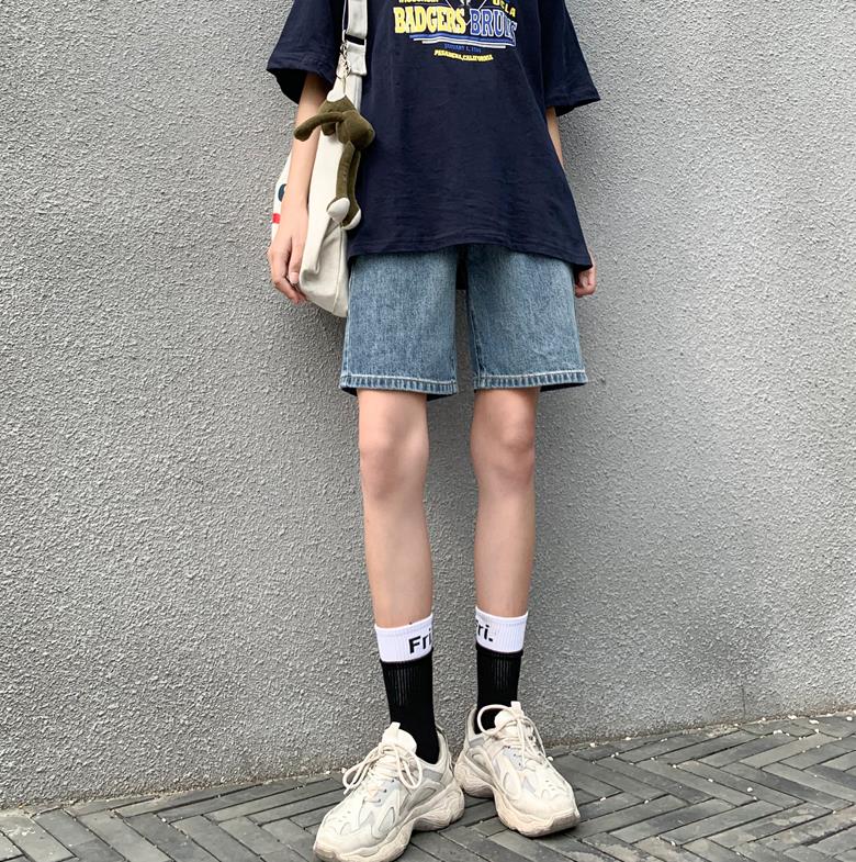 2、韩版牛仔短裤 韩版的牛仔短裤一般是A字型的,即裤腿较宽,收腰较紧,这样能够营造出腰细的感觉,是不错的选择。