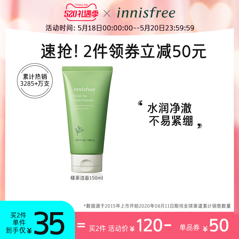 innisfree/悦诗风吟绿茶泡沫洁面乳女 补水保湿温和控油洗面奶男