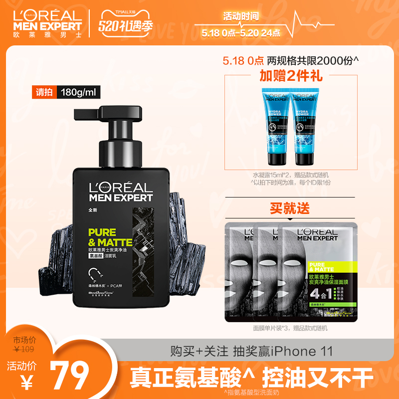 欧莱雅男士专用洗面奶氨基酸补水保湿控油洁面乳护肤品男官方正品